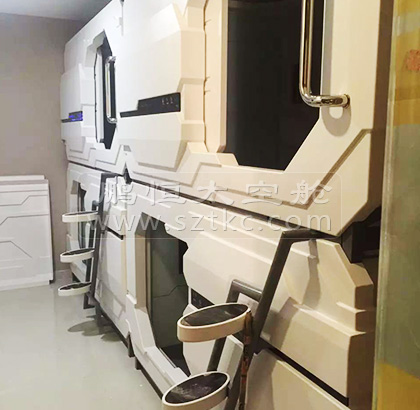 酒店内部太空舱全部使用的都是高配置的太空舱位,这种太空舱单个舱位都在10000以上,是2016年新推出的科技款,美观新颖,里面的配置有电视电脑一体机、记忆棉床垫枕头、空调、保险柜、消火器等等,能有的都有