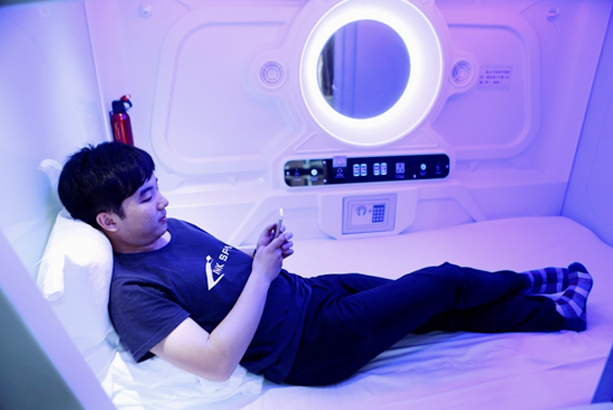 “很难想象几十元能住这么干净具有特色的酒店,床铺宽敞舒服,性价比真高,我准备买几个舱回去放在办公室,以后加班时就可以直接睡在里面了。”胡振宇大笑着说道。