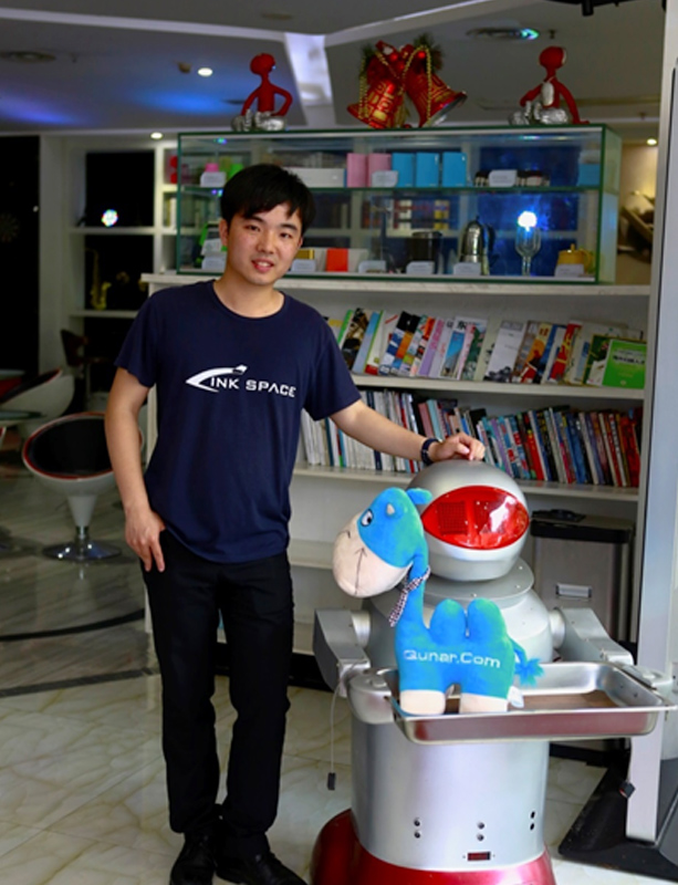 “因为常出差,经常住酒店,所以对酒店也很挑剔的,都住出经验了。”胡振宇笑着说。一走进深圳鹏恒筑梦者太空舱酒店,就会发现左右两边站着两个送餐机器人,憨态可掬地恭候往来的客人。