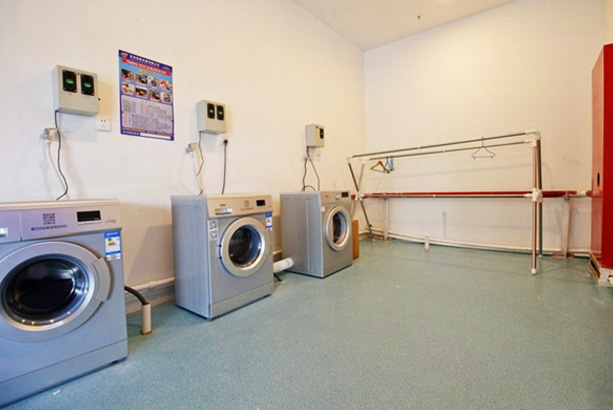 淋浴间是公用的淋浴间,装修的很宽敞。里面24小时热水淋浴。常备有洗发水、淋浴露、纸巾、吹风机等日常用品。洗衣间里有投币式洗衣机,有水洗和干洗两种。水先5块钱一次,干先8块钱一次。